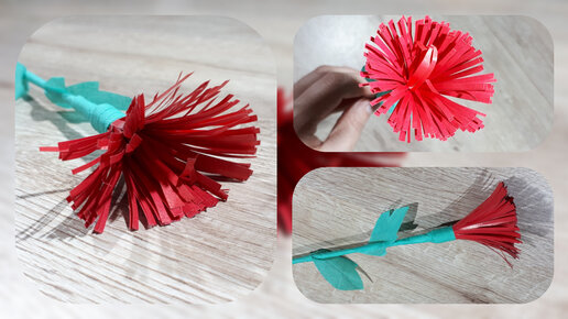 Показываю простой способ сделать гвоздику из цветной бумаги
