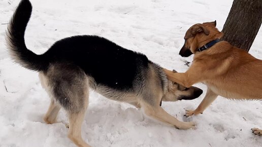 Вышли с псом на прогулку во внеурочное время, искали собачек, не нашли, разочаровались. И вдруг одна идет. Вот это радость!
