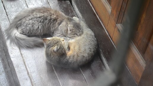 Кошка кормит полуторагодовалого (!) котёнка