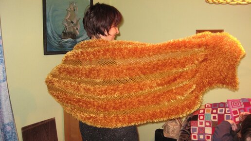Вязанный палантин спицами + крючок