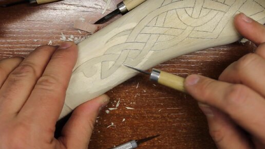 Резьба по Дереву на Топорище. Простой узор вырезанный на топорище своими руками