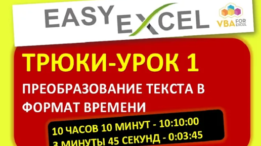 Трюки в Excel. Урок 1. Преобразование текста в формат времени