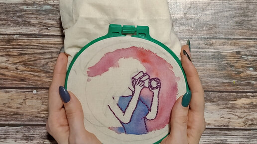 Вышивка на сумке и роспись акварелью
