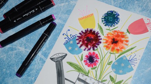 Весенний букет из ватных дисков и цветной бумаги. Поделки для малышей