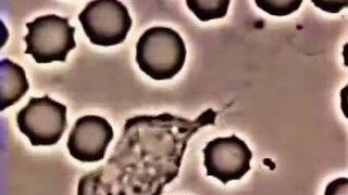 Как работает наш иммунитет.Видео.Макрофаг догоняет и поглощает золотистый стафилококк.