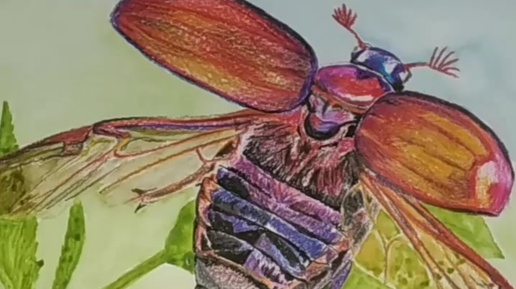 Майский жук цветными карандашами!
