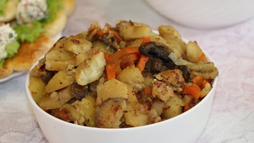 Картофель с курицей и грибами в духовке. Готовлю так на каждый праздник