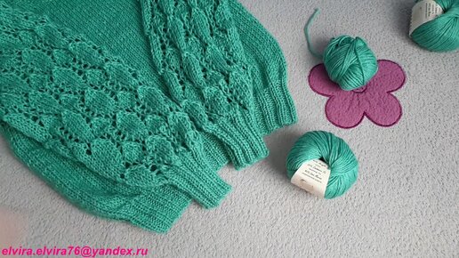 ДЖЕМПЕР ВЯЗАНЫЙ С АЖУРНЫМИ РУКАВАМИ. ВЯЗАНИЕ СПИЦАМИ. ОБЗОР