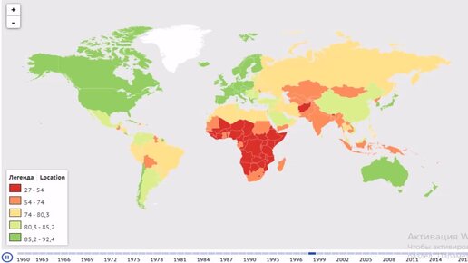 Вероятность дожития до 65 лет, женщины