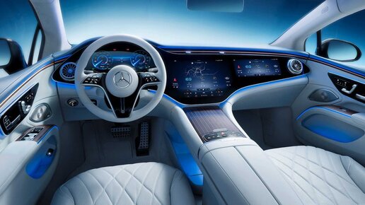MERCEDES-BENZ EQS(2022). Электро S-класс. Очень футуристичный хай-тек салон.