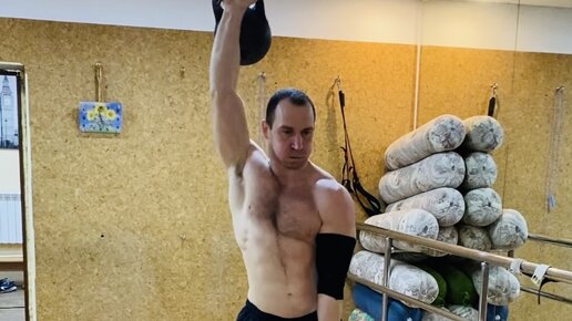 Тренировка с гирями. Связка с гирями. Подтягивания на кольцах. Отжимания в стойке. Турецкий подъем гири 32 кг.