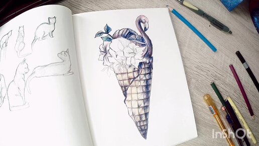 Фламинговое мороженое или мороженое с фламинго) рисую для марафона "Топ иллюстратор 4"