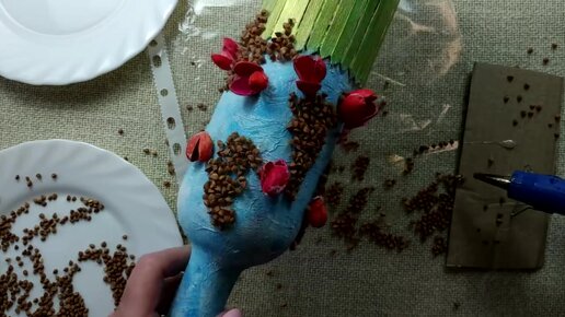 Взяла бутылку, обычную гречку и сделала красивый декор для дома.