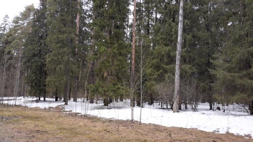 Гуляем с собакой в весенне-зимнем лесу