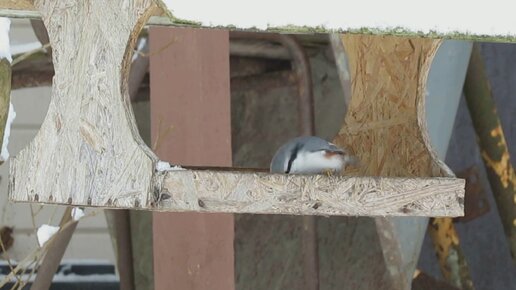 Кормление синичек в самодельной кормушке