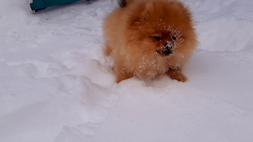 Шпиц Баффик наслаждается последними зимними прогулками.