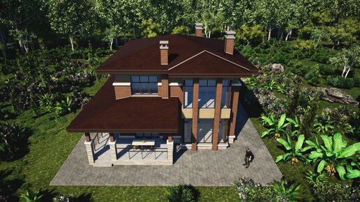 Облёт модели двухэтажного дома по архитектурному проекту №58-92EL. Ссылка на проект в описании.