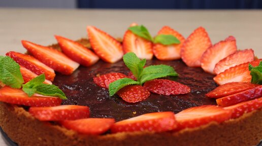 Готовлю постный шоколадный чизкейк и украшаю свежими ягодами.
