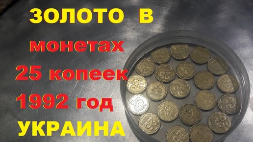 Сколько Золота в украинских монетах. 25 коп 1992г.
