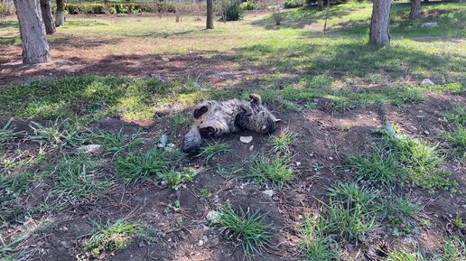 Кошка в Анапе радуется наступившей весне и катается по земле