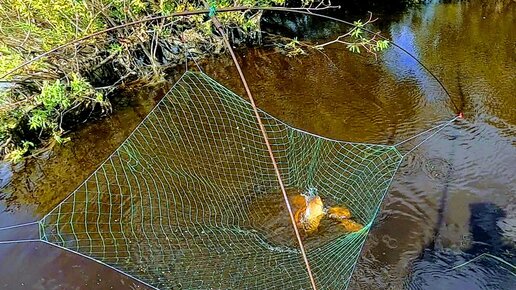 Рыбалка на паук. Огромные караси в болотном ручье.