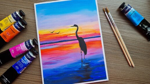 Рисуем просто / Эффектный пейзаж за 10 минут без навыков рисования / Картина акрилом поэтапно шаг за шагом