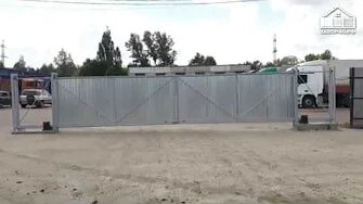 Двустворчатые откатные ворота. Пролет 9 метров.