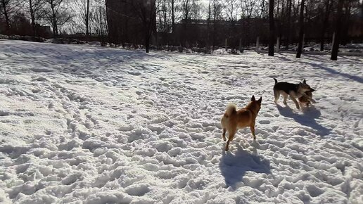 Мы с моим овчаренком идем на собачью площадку. Нас встречают два веселых игривых рыжика