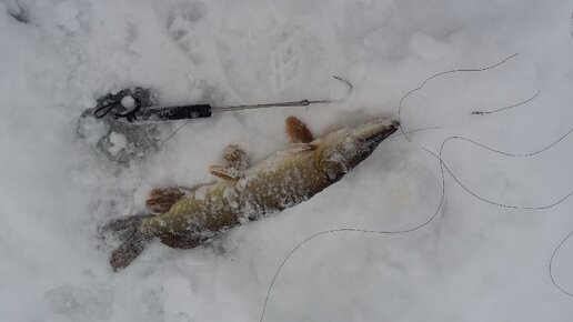 Мальчишка показал как нужно вытаскивать щуку зимой