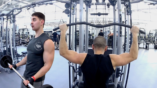 Пригласил брата в фитнес центр . Тренировка спины на ширину и массу . Тренажёрный зал .