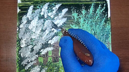 Лёгкие рисунки: сирень у забора. Акрил, гуашь