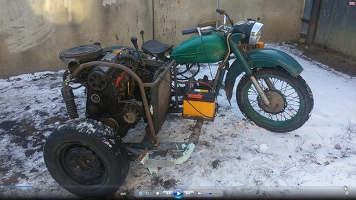 Мотоцикл сдвигателем от ВАЗ 2109 в коляске. Первый выезд.