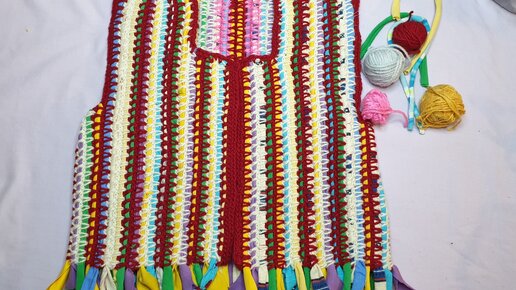 Использование остатков пряжи, ткани и старых футболок- Жилет