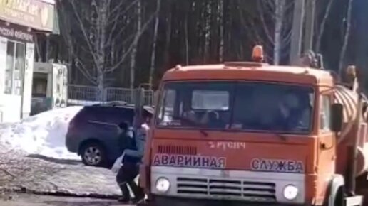 Коммунальщик перенес бабушку через лужу