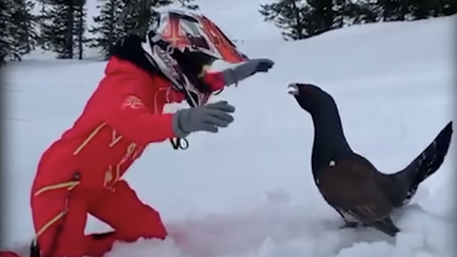 Ходят тут всякие. Храбрый глухарь выгнал туриста из парка