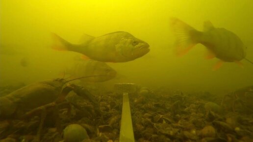 Реакция рыбы на жмых. Сколько здесь рыбы: окунь, щука, карась, плотва.