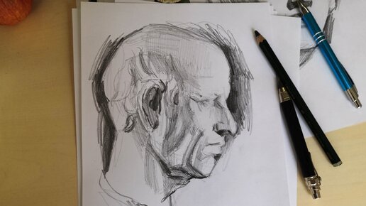 Обеденный перерыв, рисую гипсовую голову старого римлянина без ластика