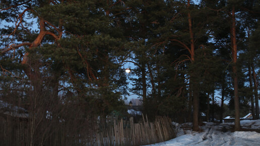 Закат на Унже, гнездовье воронов и полная луна