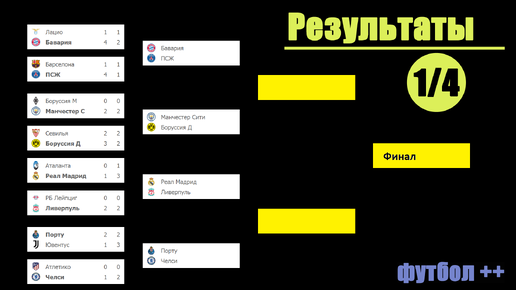 Лига Чемпионов 20 / 21. Все результаты. Расписание. 1/4 финала.