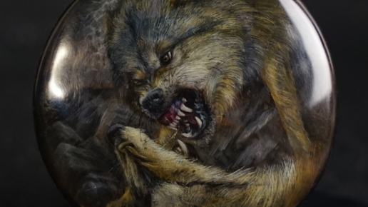 Нарисовала кулон талисман Валькирия на обсидиане. Лаковая миниатюра на камне