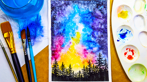 Как нарисовать космос акварелью поэтапно. Акварель для начинающих