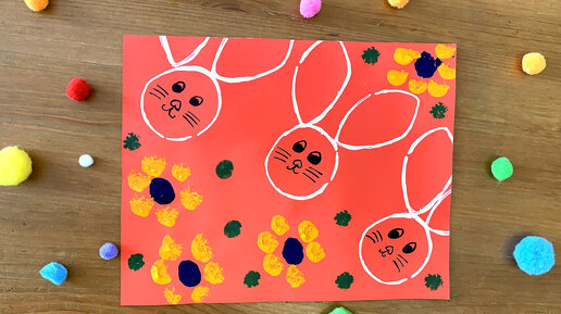 Пасхальный кролик. Простой рисунок штампами для малышей.