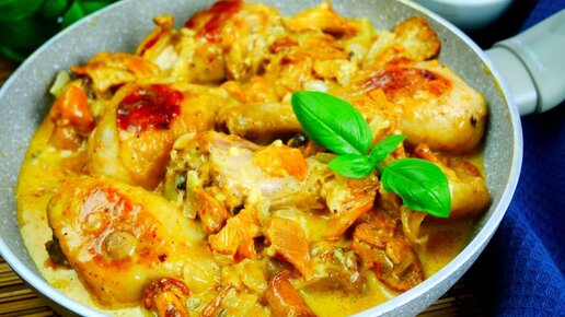 Курица с лисичками в сливочном соусе -рецепт куриных голеней