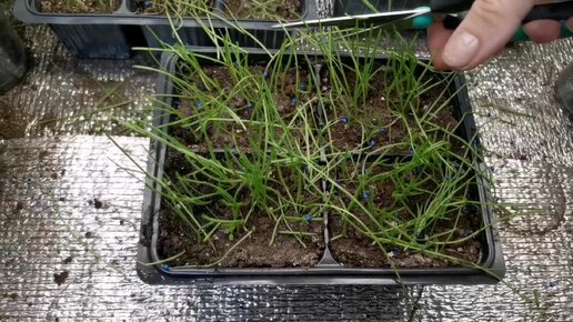 Стрижка рассады лука.