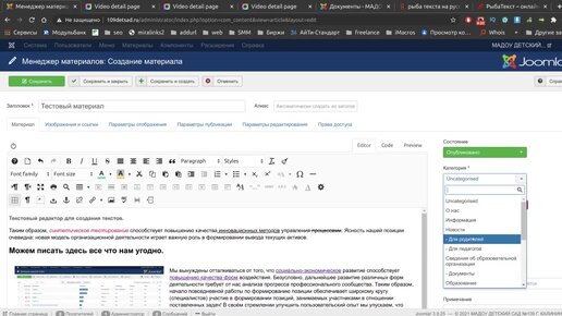 Создание материала в Joomla 3.x. Как создать материал (страницу сайта) в админке Joomla 3? Видео_#4