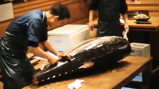 Японские развлечения: шоу по разделке и дегустации огромных рыб