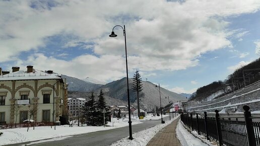Эсто-Садок - популярный горнолыжный курорт рядом с Роза Хутор, прогулка вдоль набережной