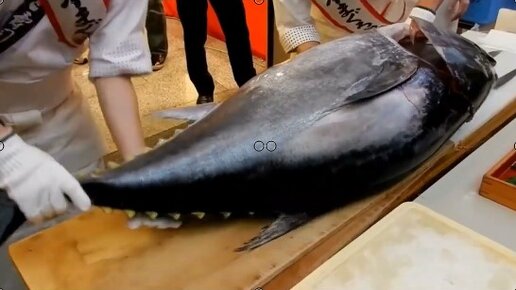 В японском ресторане разделывают огромную рыбу прямо перед гостями