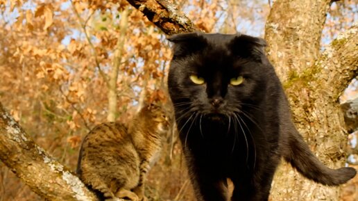 Чернышка, Плюшка и Весна. Кошки в весеннем саду