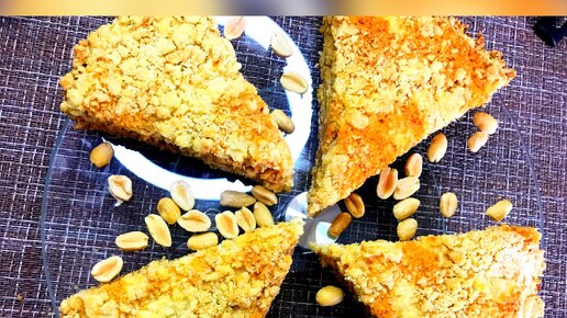 Насыпной пирог с лимоном, мёдом и арахисом